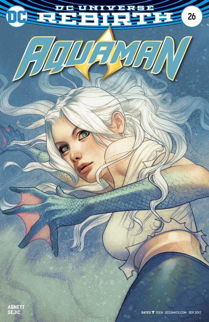 "UNDERWORLD" part two! Enraged by rumors of Arthur's survival in the slums of Atlantis, the ruthless King Rath orders the use of ancient Atlantean techno-magic to track down the Aquaman at all costs! But the ex-king Arthur can't hide for long when his fate collides with that of a mysterious young woman on the run from Rath's own secret police. Her name: Dolphin.